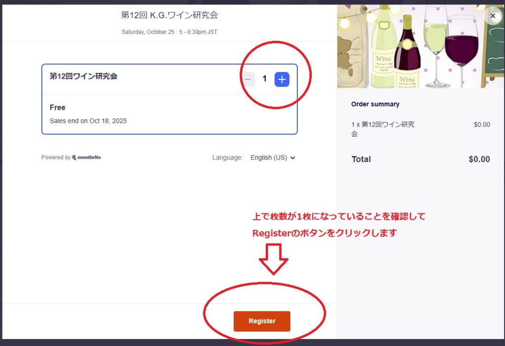 3.下記のような画面が表示されるので数字が1になっているこを確認して、Registerボタンをクリックします。