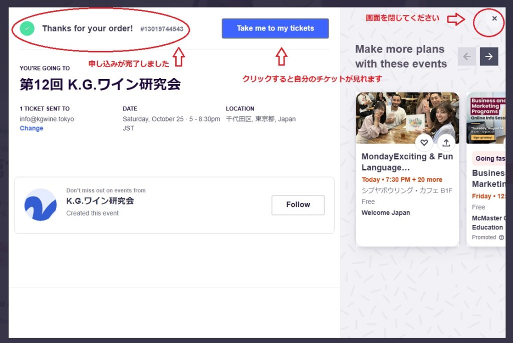 5.下記のような画面が表示されたら申し込み成功です!