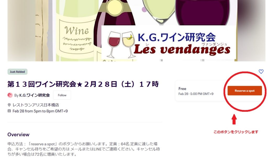 2.下記の画面が表示されるので右のreserve a spotをクリックします